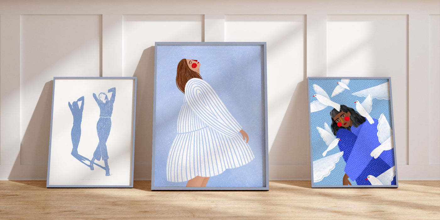 Blue Mirage forener vores nye FSC®-certificerede rammer (FSC® C186933) med en hel kollektion af plakater, der matcher perfekt i farverne. Hver ramme har sit eget udvalg af colormatch plakater – fra Classic Blue og Midnight Teal til Icy Blue og Cool Lavender. Vi har gjort det nemt for dig at skabe en billedvæg i fuld harmoni, hvor ramme og motiv smelter sammen til et personligt udtryk.