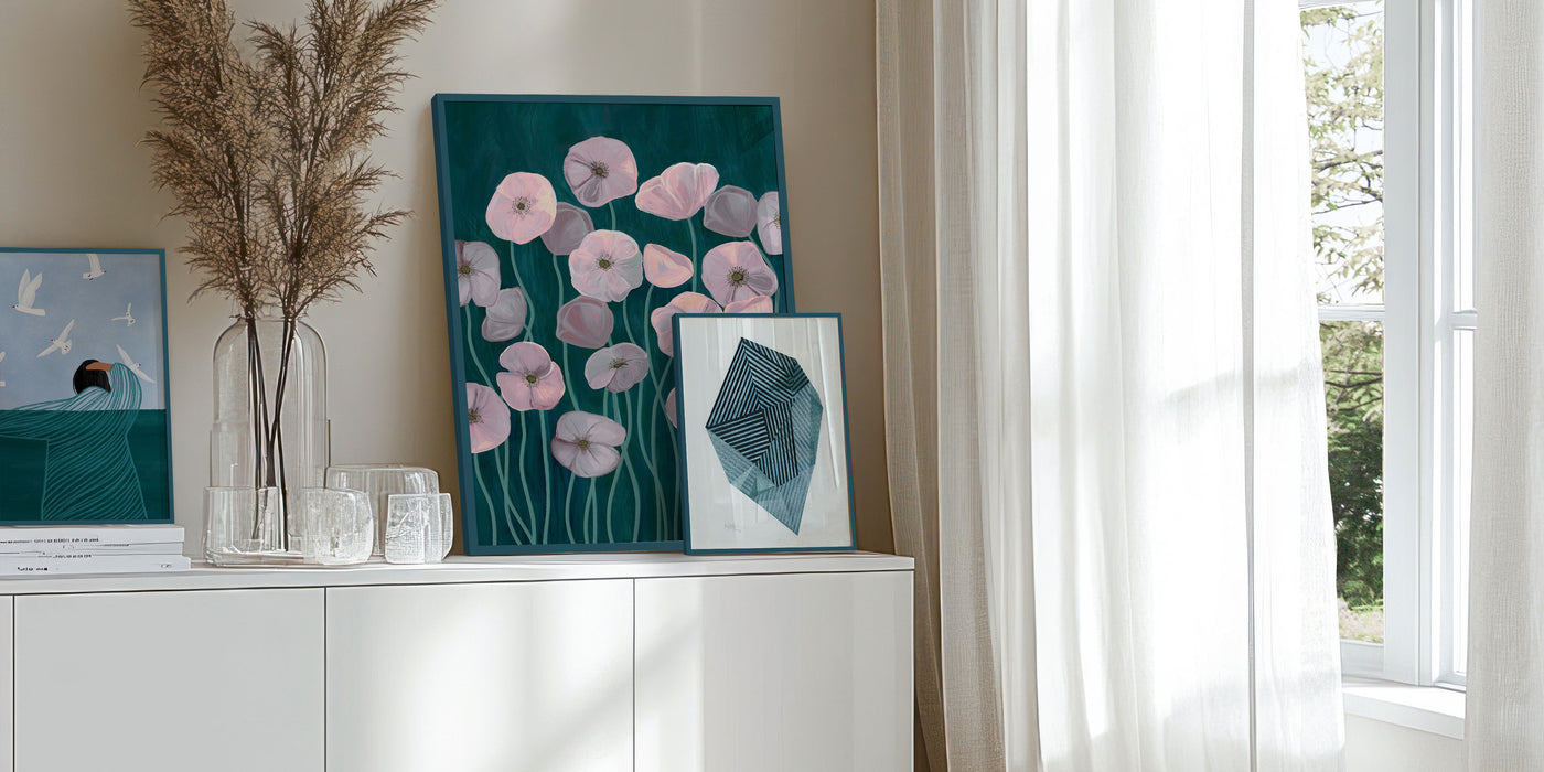 En intens grønblå nuance, der giver karakter og drama til din væg. Midnight Teal åbner for dybde og kontrast, og lader plakaterne træde frem med en markant personlighed. Skab en billedvæg, der imponerer og fascinerer.