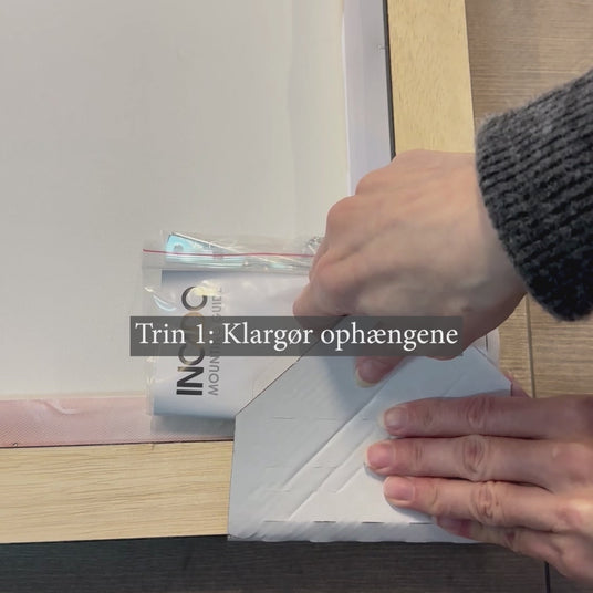 Læg maleriet forsigtigt på en flad overflade med bagsiden opad for at sikre en stabil og nem montering.