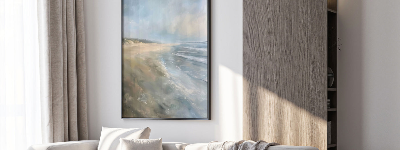 - Minimalistisk elegance: Rene linjer og afdæmpede farver skaber et tidløst udtryk, der bringer ro og balance ind i dit hjem. Vælg enkle motiver og kvalitetsrammer for et stilrent og harmonisk look.