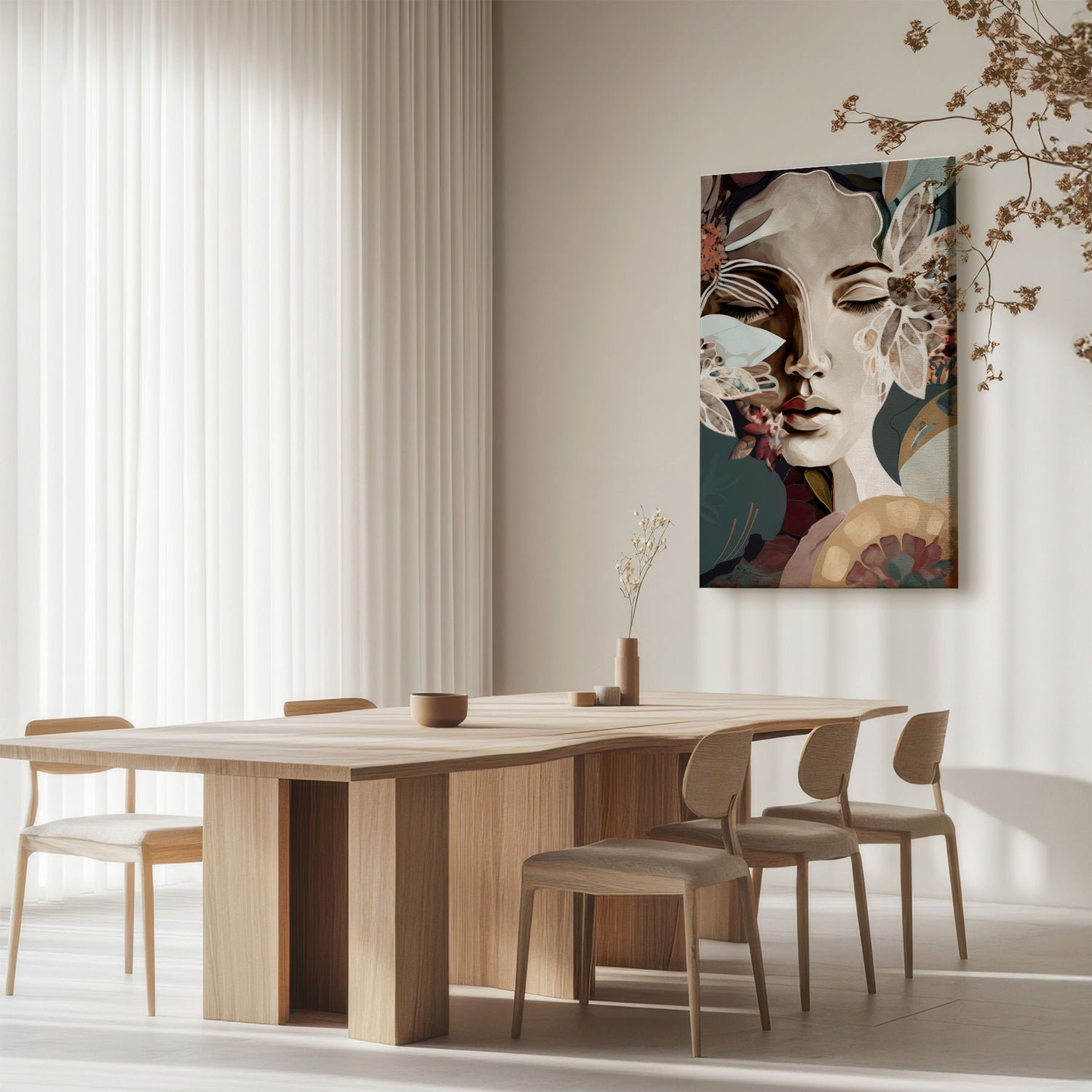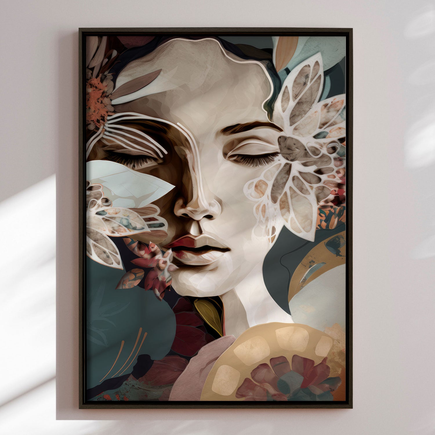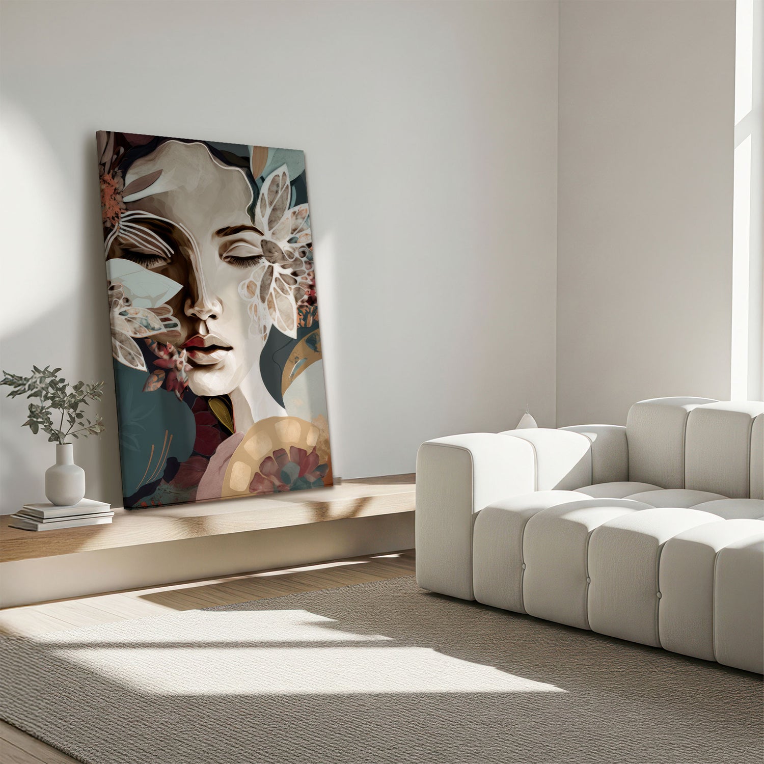 Lærredstryk - Woman Portrait with Floral Elements - Bella Eve