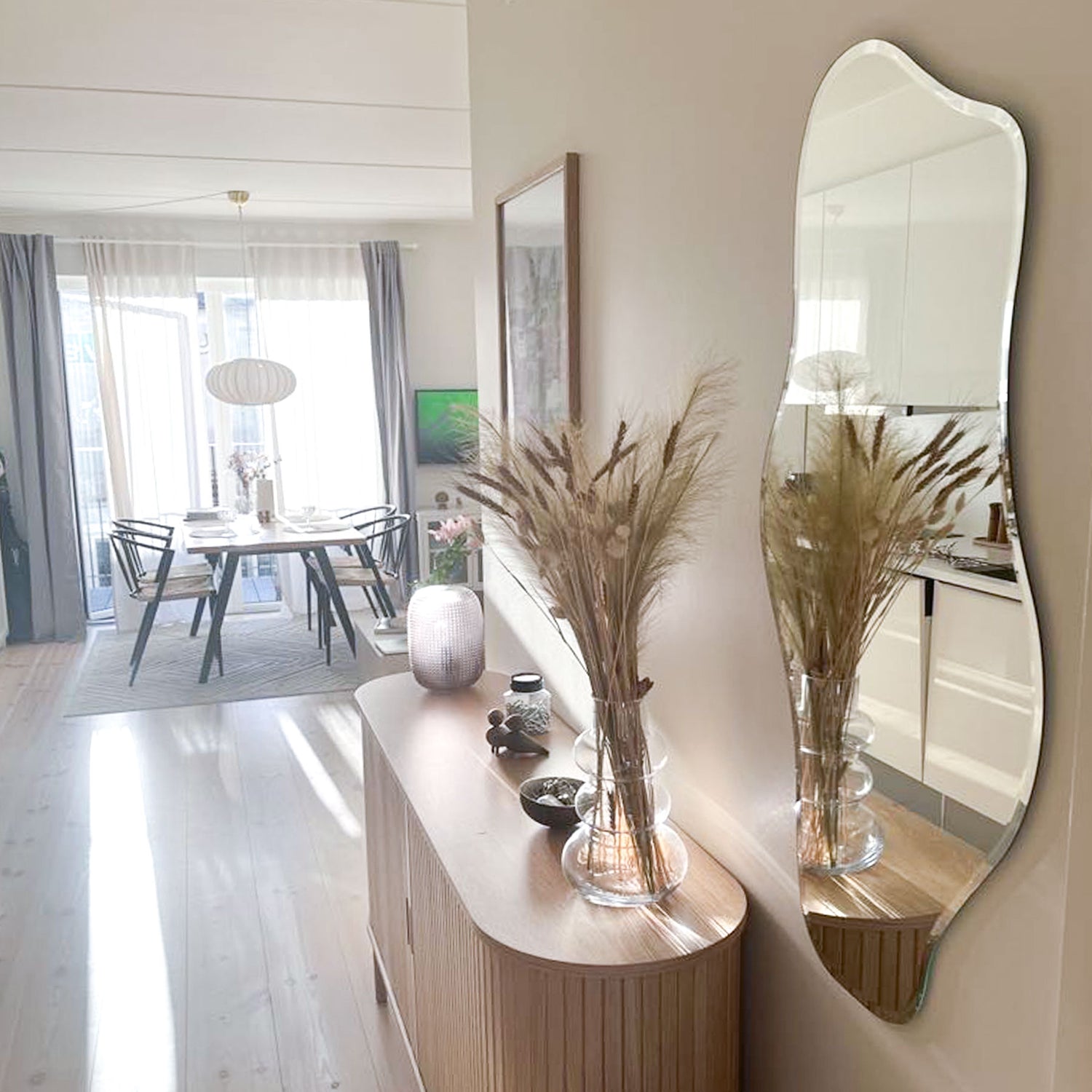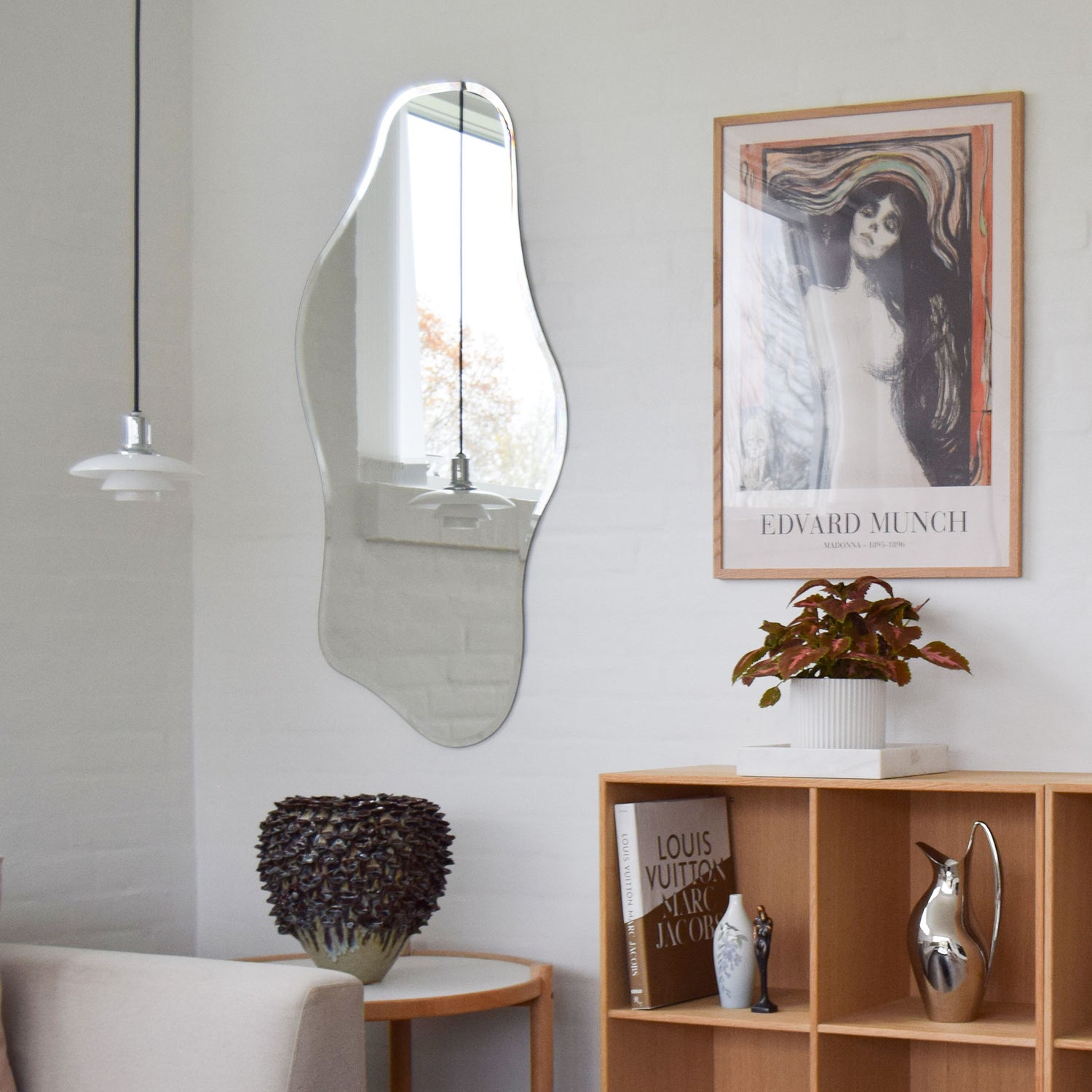 Dette er vores mest populære spejl, Wave, som forener skandinavisk design med moderne elegance. Den organiske og asymmetrisk bølgende form giver et blødt og naturligt udtryk, mens den eksklusive facetkant tilføjer en raffineret finesse. Det er et sandt mesterværk af form og funktion, designet til at skabe et fokuspunkt i ethvert rum. Dette spejl passer smukt ind i enhver moderne indretning, hvor det både kan fungere som et praktisk og dekorativt element.✓ Dansk design