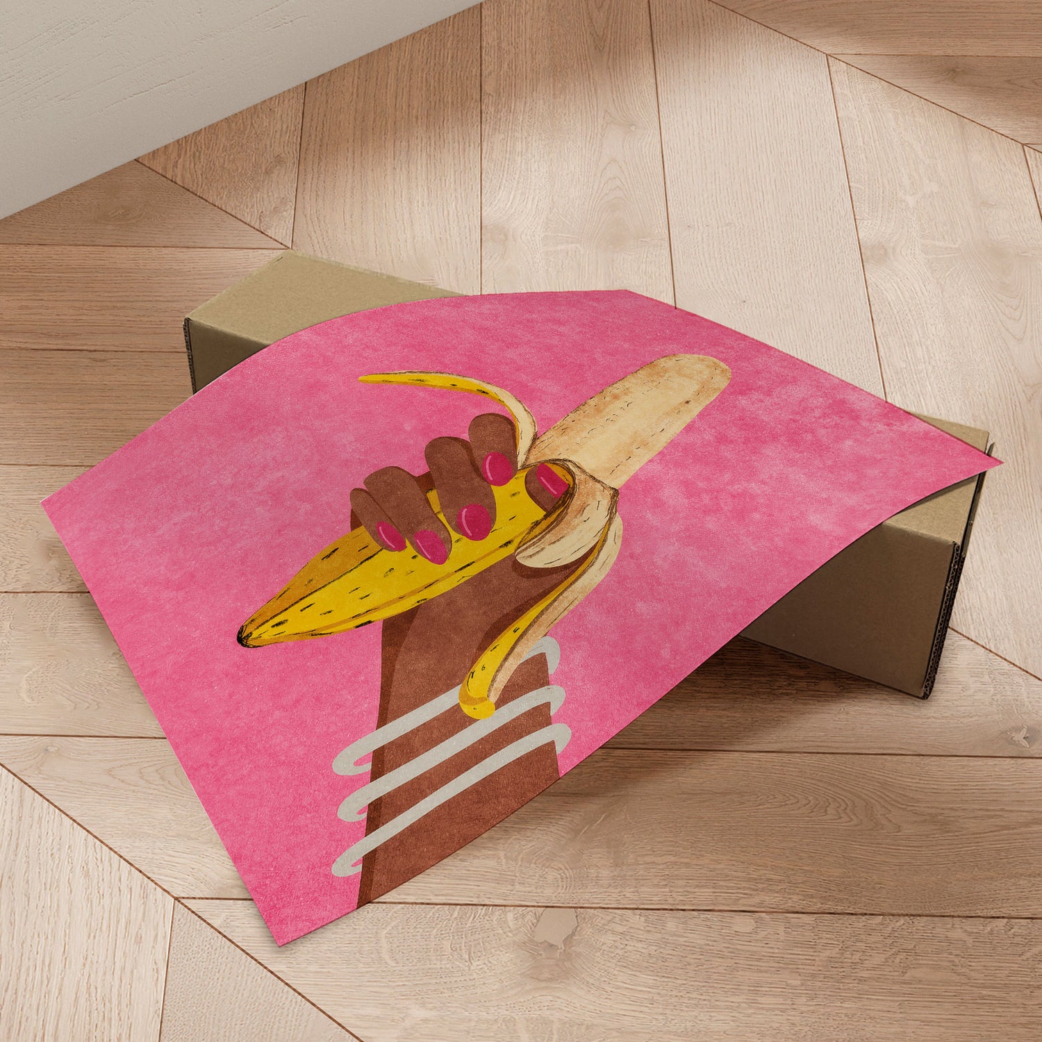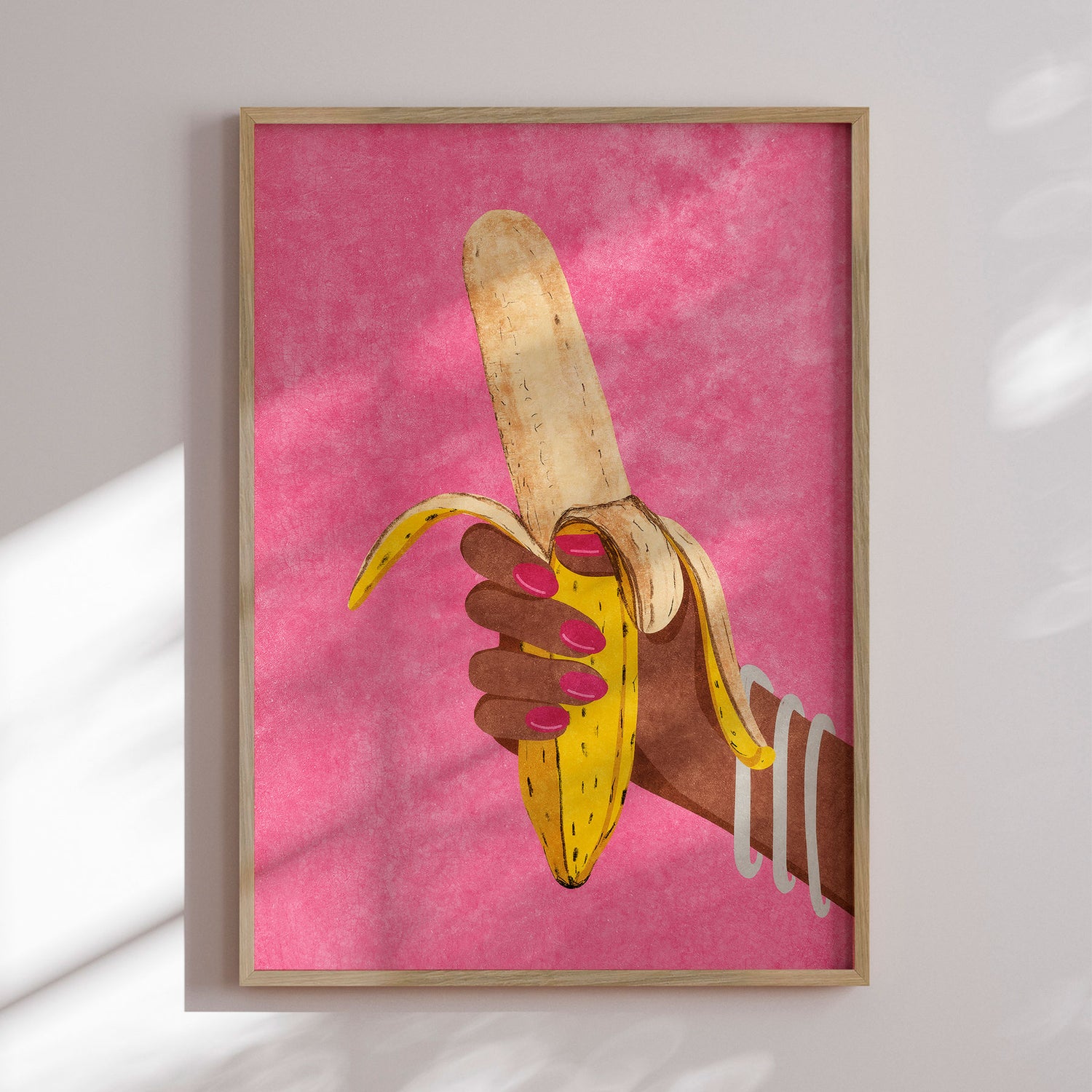 "Banana in Hand" af Raissa Oltmanns er en modigt og humoristisk plakat, der leger med symbolik, krop og blik. Hånden, den skrællede banan og de stærke farver skaber et tydeligt, selvsikkert udtryk med glimt i øjet. Motivet balancerer mellem leg og provokation og tilfører rummet attitude og personlighed. En plakat, der tør fylde og vække samtale.✓ Produceret i Danmark