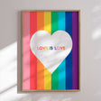"Love is Love" af Ohkimiko er en klar og inkluderende plakat med et stærkt, universelt budskab. Det hvide hjerte står i kontrast til de farverige regnbuestriber og symboliserer kærlighed, mangfoldighed og accept. Det enkle grafiske udtryk gør motivet både moderne og tidløst. En plakat, der markerer værdier, spreder positiv energi og giver rummet et statement med mening.✓ Produceret i Danmark