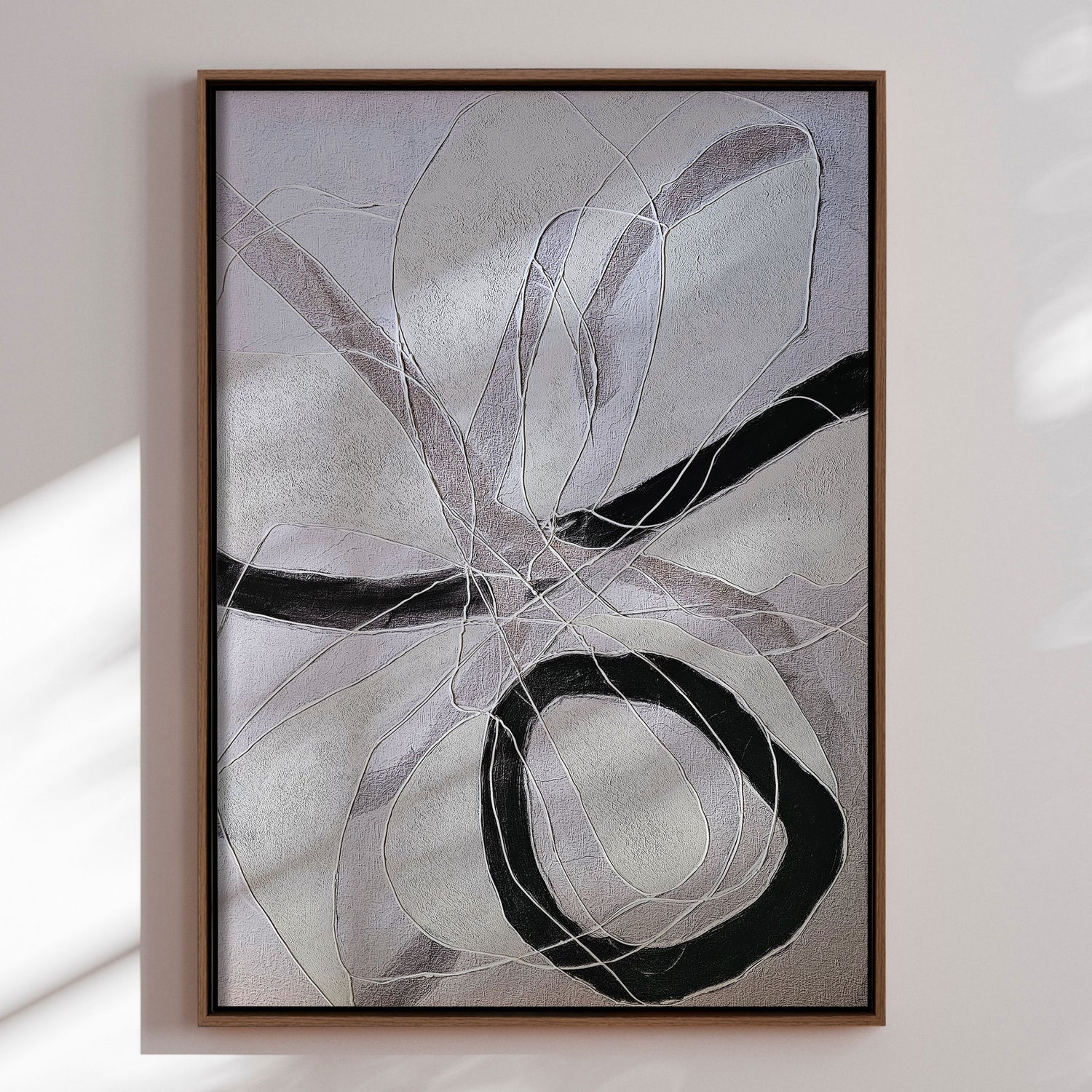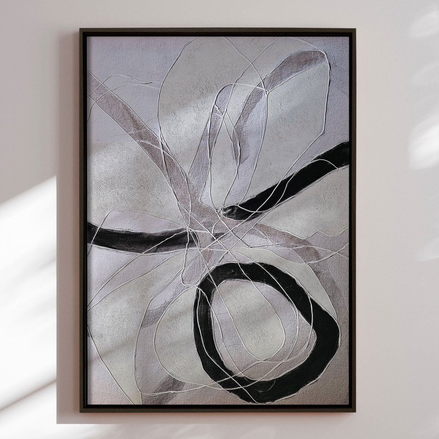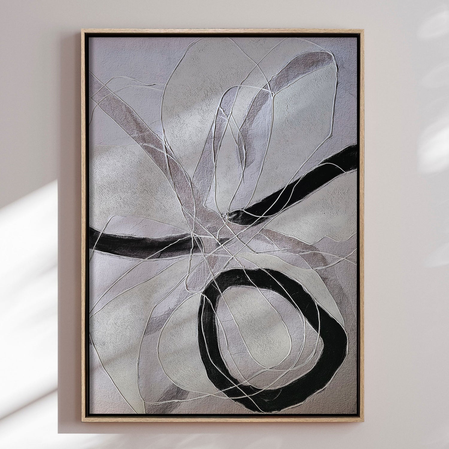 "Line Study" er et roligt og raffineret maleri, hvor bløde beige og grå nuancer balanceres af dybe sorte former og fine, lyse linjer. De organiske bevægelser krydser hinanden i en let og næsten poetisk komposition, der giver værket en følelse af både struktur og frihed. Overfladen og de afdæmpede kontraster skaber dybde uden at virke tunge, hvilket gør maleriet harmonisk og tidløst. Et elegant kunstværk, der tilfører rummet ro, eftertænksomhed og et subtilt kunstnerisk udtryk.✓ Designet og produceret i Danmark