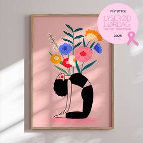 "Floral Yoga Fusion" af Bea Müller forener krop og natur i en harmonisk balance. Kvinden i yogastillingen danner en elegant bue, hvorfra farverige blomster springer frem som symbol på vækst, energi og indre ro. De klare nuancer mod den bløde rosa baggrund giver værket et optimistisk og livsbekræftende udtryk. En plakat, der indfanger forbindelsen mellem styrke, skønhed og mindfulness.✓ Produceret i Danmark