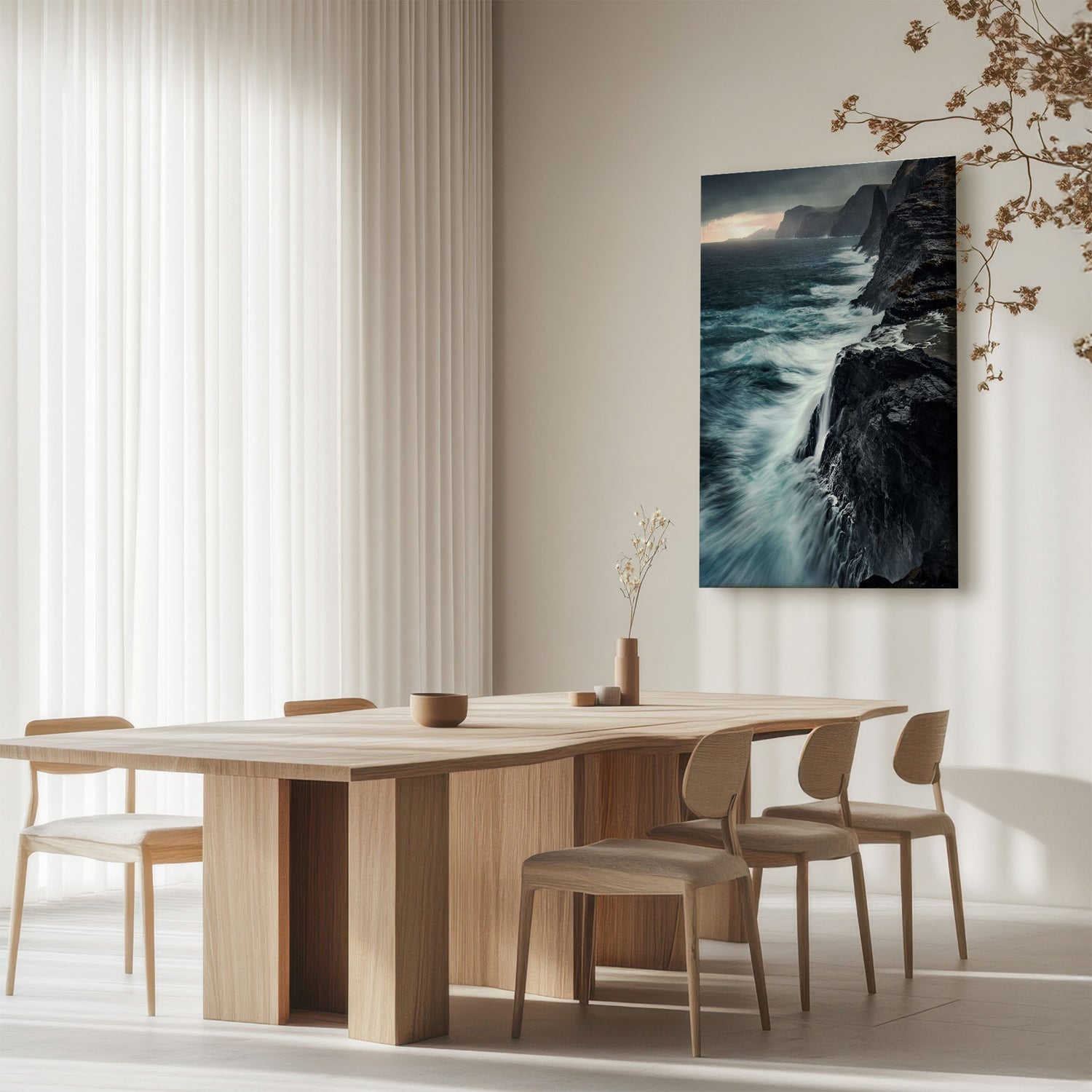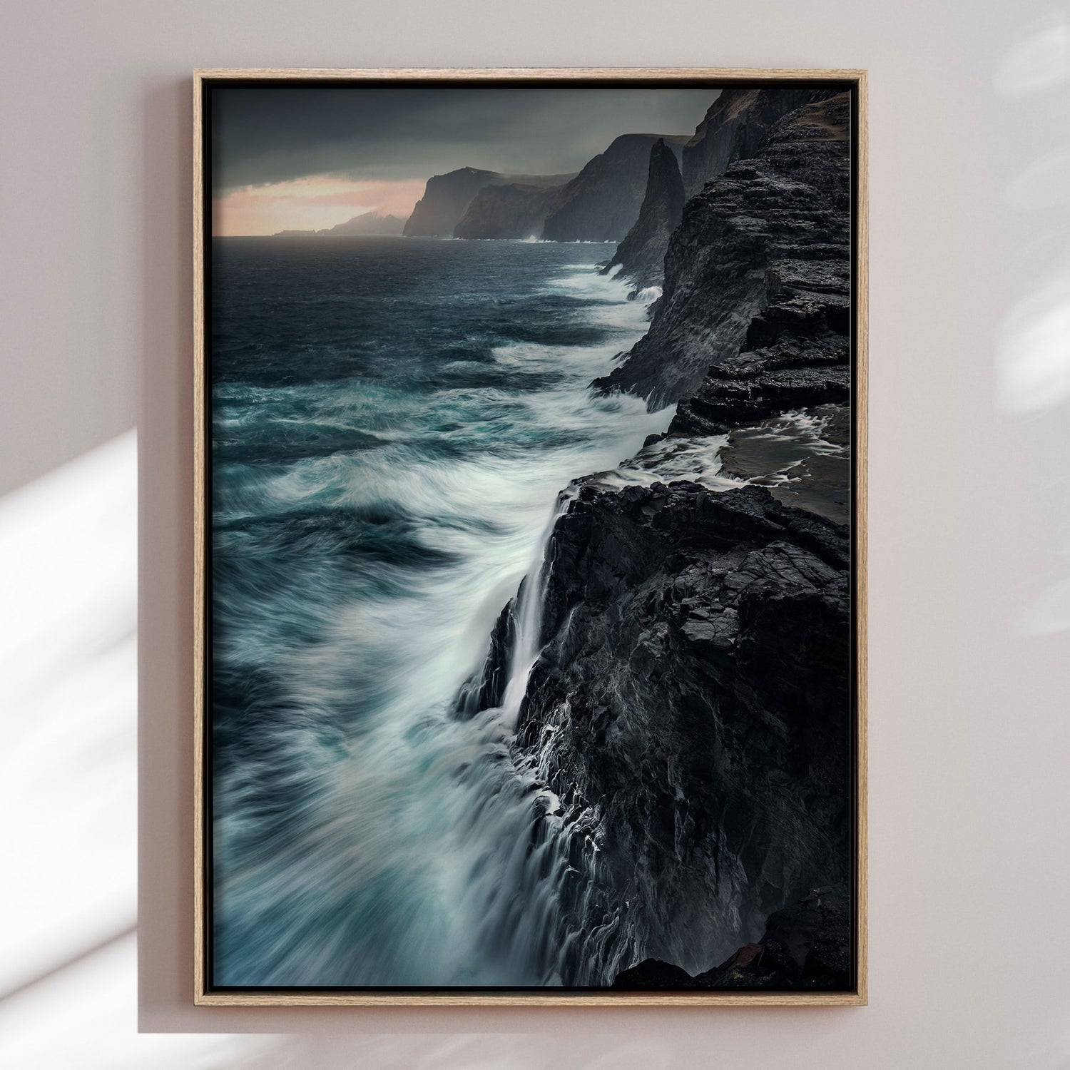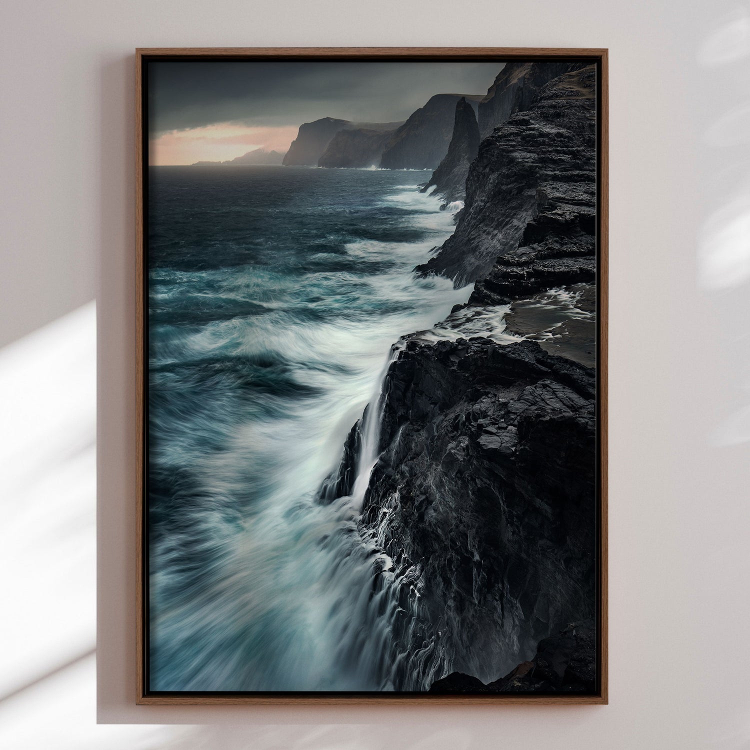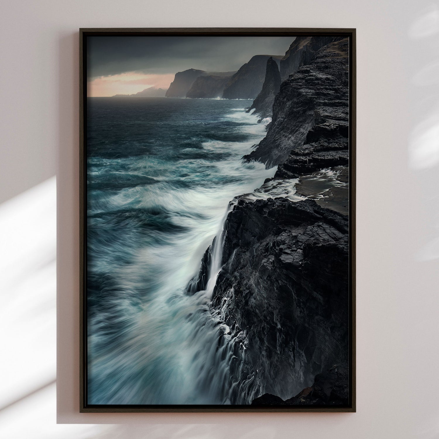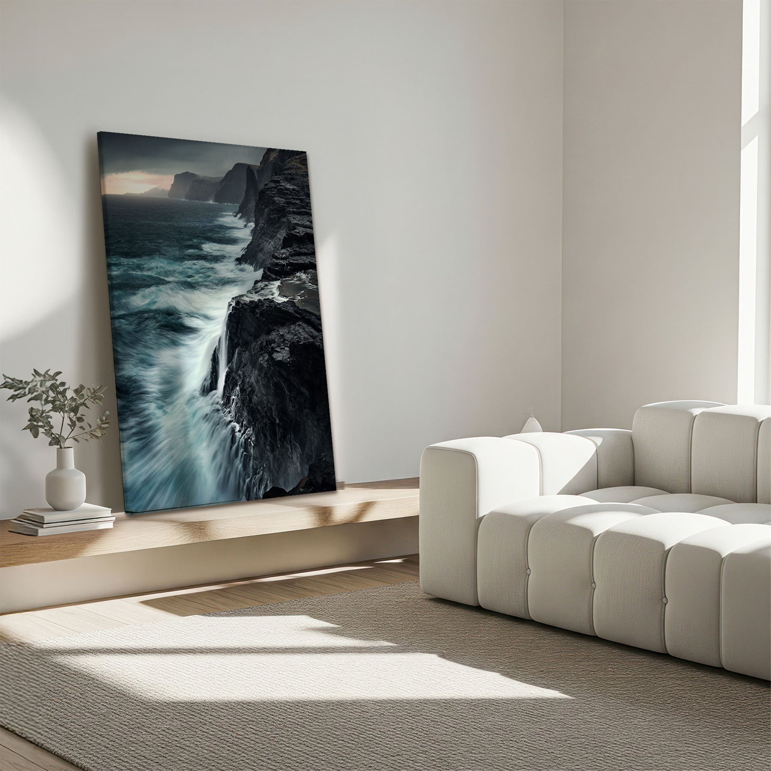"Bøsdalarfossur" af Mads Iversen indfanger naturens rå styrke og nordiske ro. Vandfaldet styrter ned mellem mørke klipper, mens tåge og dybe grønne nuancer skaber en dramatisk og stemningsfuld komposition. Lyset bryder gennem landskabet og tilfører motivet dybde og bevægelse. Et lærredstryk, der bringer naturens vilde energi og tidløse skønhed ind i hjemmet.Billedet blev taget af den prisvindende fotograf Mads Iversen.