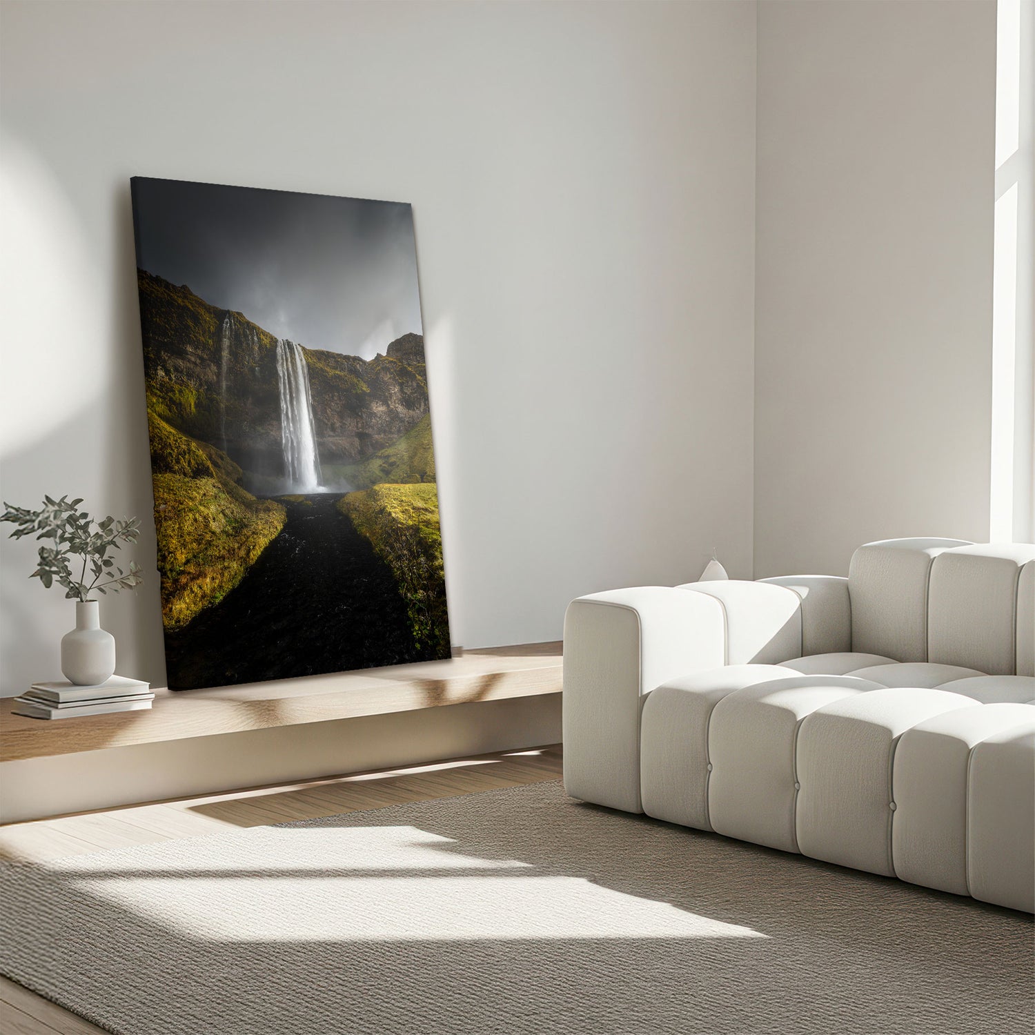 "Dusty Waterfall" af Mads Iversen indfanger et råt og stemningsfuldt vandfald i nordisk natur. Vandet falder gennem tåge og støvede nuancer, mens mørke klipper og afdæmpet lys skaber en dramatisk og rolig komposition på samme tid. Kontrasterne tilfører motivet dybde og kraft. Et lærredstryk, der bringer naturens vilde poesi og tidløs ro ind i hjemmet.Billedet blev taget af den prisvindende fotograf Mads Iversen.