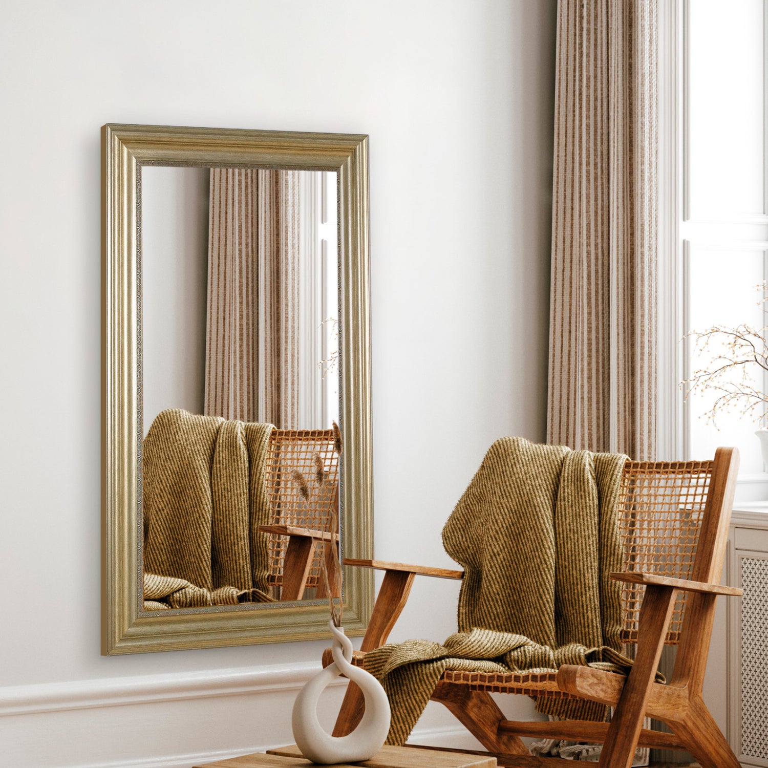 Elegant med smukt antik spejl med en flot ramme med et champagnefarvede finish. Spejlet passer rigtig godt til det stilrene og moderne hjem, men kan også kombineres med loppefund og vintage indretning. Rammen har en bredde på 8 cm.✓ Designet i Danmark