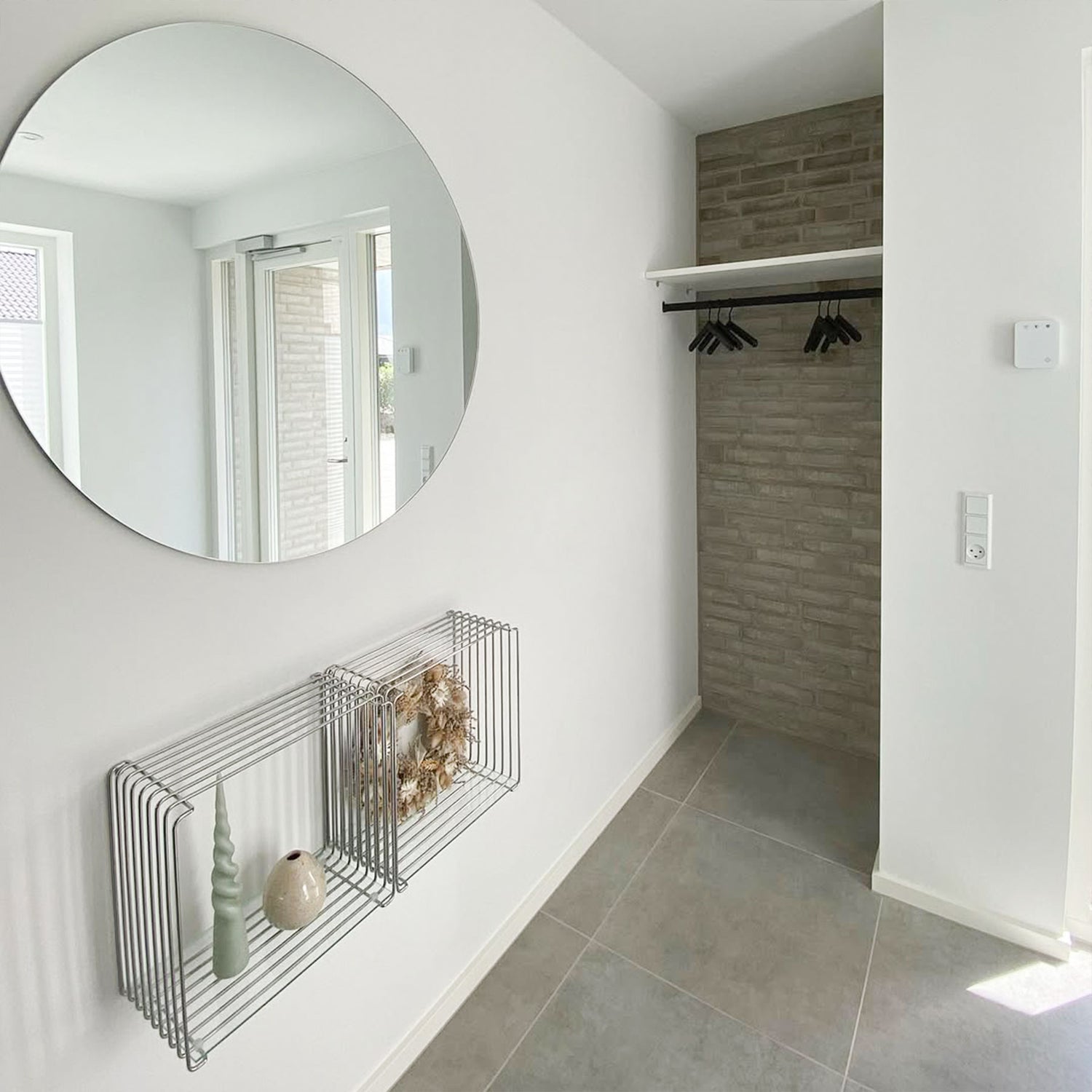 Dette traditionelle runde spejl er essensen af simpel, minimalistisk elegance. Udført i høj kvalitet, er dette spejl designet til at fange og reflektere både lyset og det rum, som det hænger i, på en måde der tilfører en åben og luftig fornemmelse. Dets rene linjer og ubesværede udtryk gør det til et moderne stykke, som kan blive en diskret, men værdifuld tilføjelse til ethvert rum i hjemmet. Dette elegante, smalle spejl uden bagplade er designet til at give et minimalistisk look og hænger diskret tæt på væggen.✓ Dansk design
