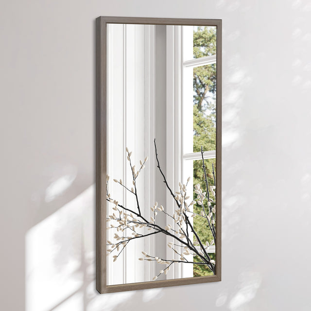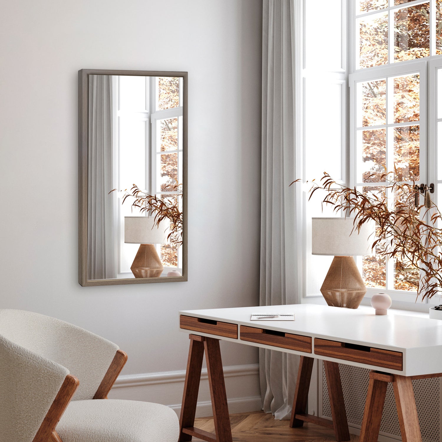 Tilføj elegance og funktionalitet til din indretning med det aflange spejl "Grey Oak". Med sin 2 cm brede og 3 cm dybe ramme i en smuk grå træfinish, fremhæves spejlet af en flot og naturlig træstruktur. Det minimalistiske design passer perfekt til både moderne og klassiske hjem og reflekterer lyset smukt for at skabe en følelse af rummelighed.✓ Dansk design