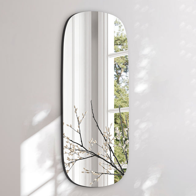 Dette asymmetriske og aflange spejl med afrundede kanter er et populært valg, der fremhæver bløde former og organisk design. Det moderne og luksuriøse udseende giver rummet et sofistikeret præg, samtidig med at det tilfører en følelse af elegance og stil. Dets unikke design og moderne æstetik vil være med til at definere rummets karakter og tiltrække opmærksomhed.✓ Dansk design