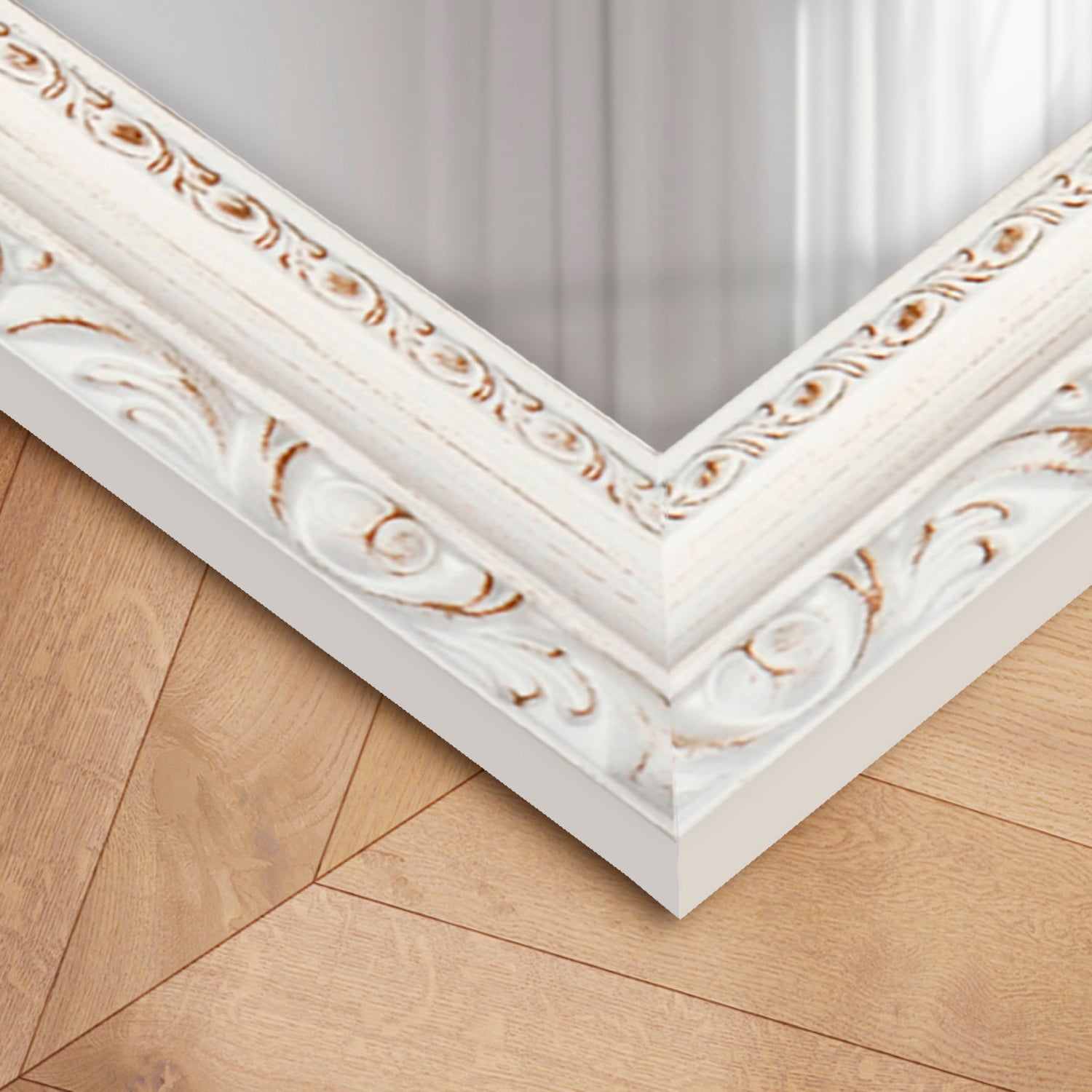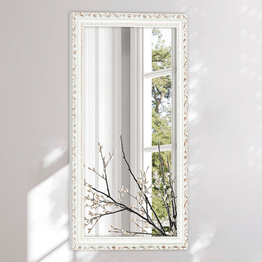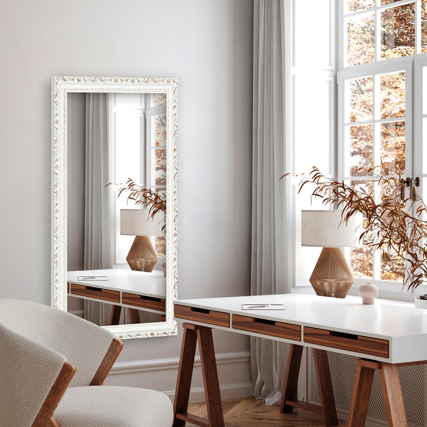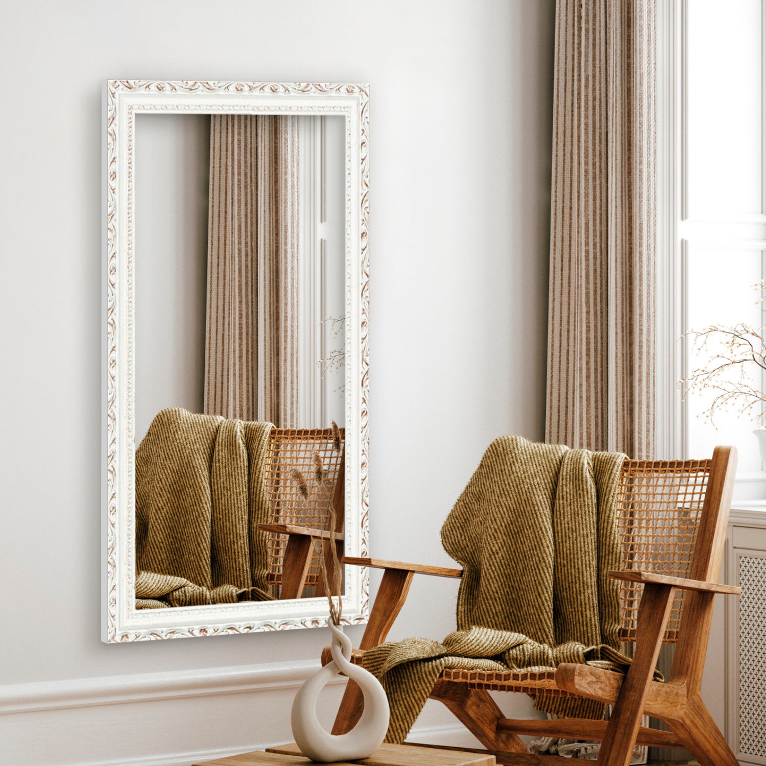 Dette antikke spejl med en klassisk firkantet form og en hvid udsmykket ramme på 4 cm er et eksempel på elegant design med et moderne twist. Rammen er prydet med et fint mønster, der tilføjer en detaljerigdom og en visuel interesse, der fanger øjet og skaber en fornemmelse af raffinement. Denne stilfulde ramme gør spejlet til en alsidig tilføjelse til enhver indretningsstil, perfekt for at tilføje charme og karakter til et rum.✓ Dansk design