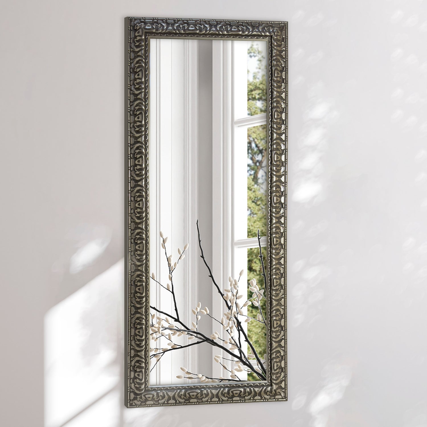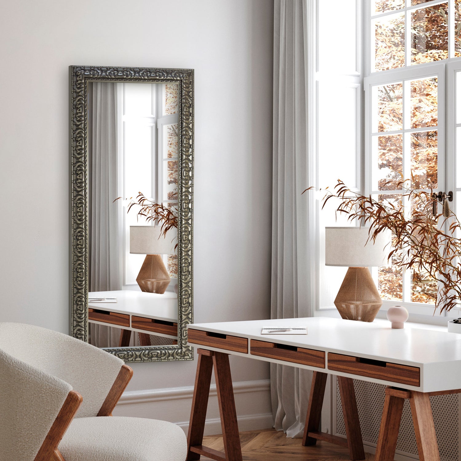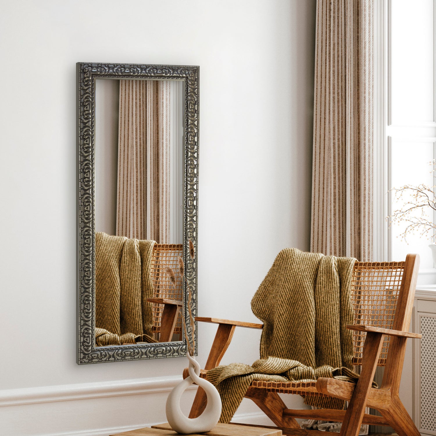 Dette antikke spejl med sølvramme er en hyldest til retro elegance. Den detaljerige, udsmykkede ramme med mønster, som måler 8,3 cm i bredden, omfavner spejlets glas og tilføjer et kunstnerisk og elegant touch til enhver væg. Med sit smukke design og sølvfinish er dette spejl ikke bare et praktisk element, men en dekoration, der reflekterer mere end bare dit billede.✓ Dansk design