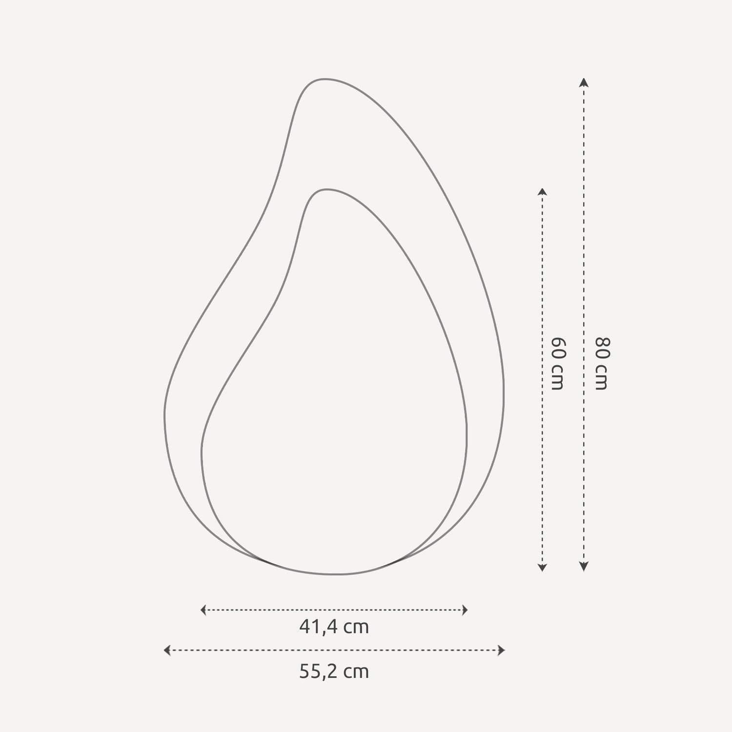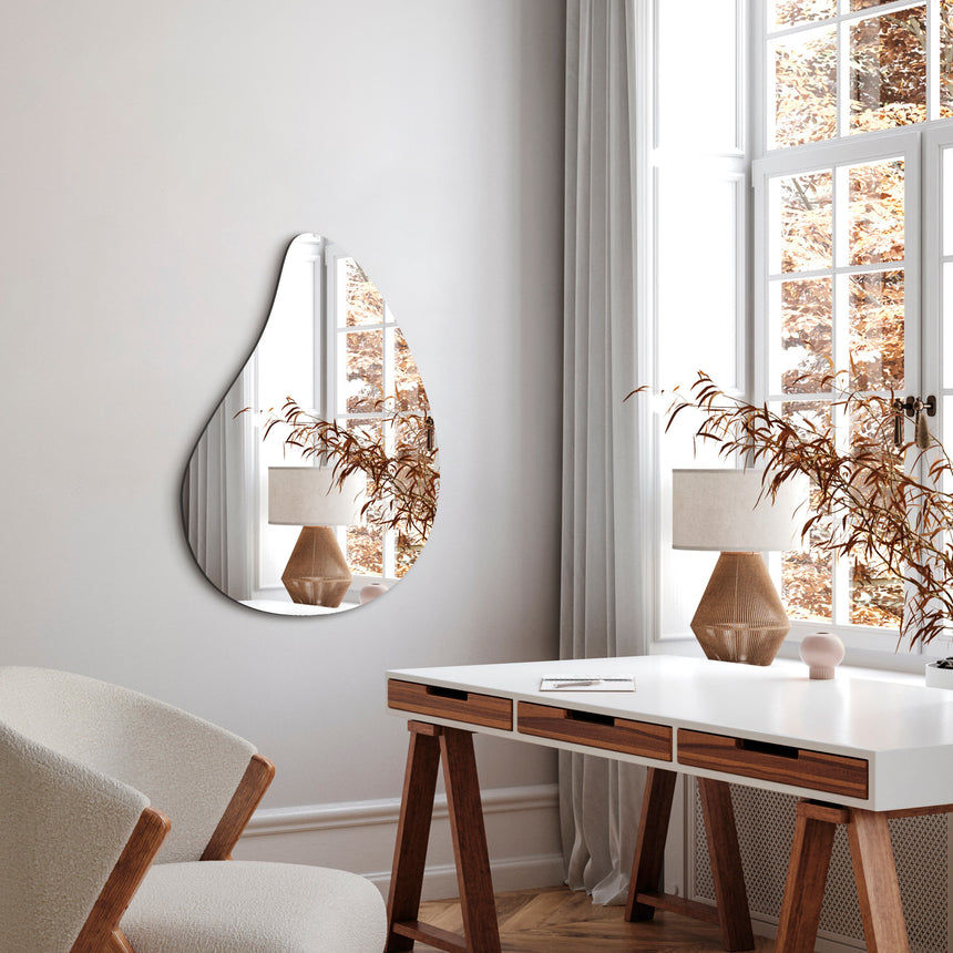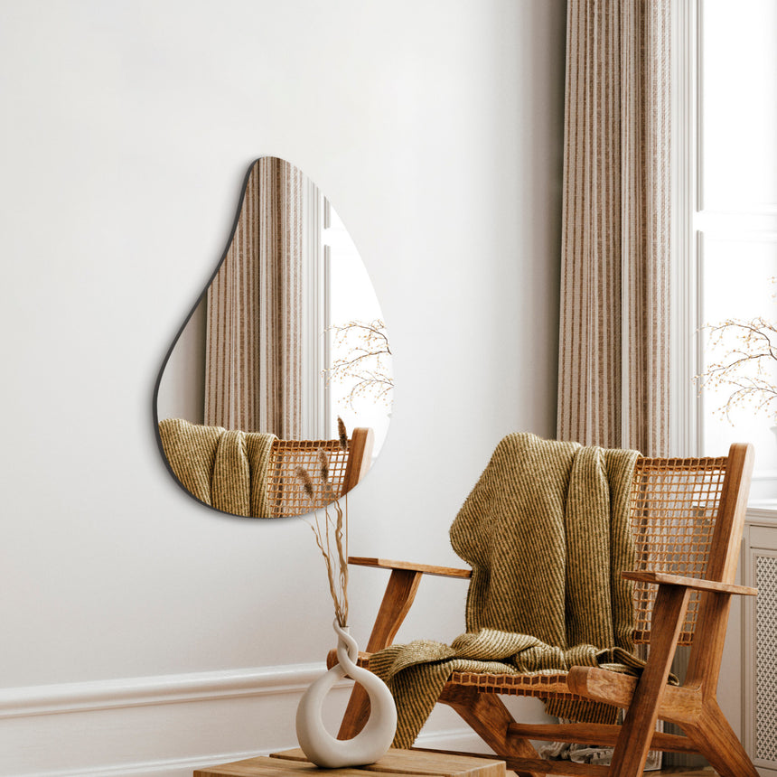 Dette dråbeformede spejl er en unik tilføjelse til hjemmet, som bringer naturens blødhed og asymmetri ind i boligindretningen. Spejlets organiske form gør det muligt at hænge det på flere måder, hvilket giver en dynamisk og personlig touch til rummet. Dets bløde kurver og asymmetriske design gør det til en dekoration i sig selv.✓ Dansk design