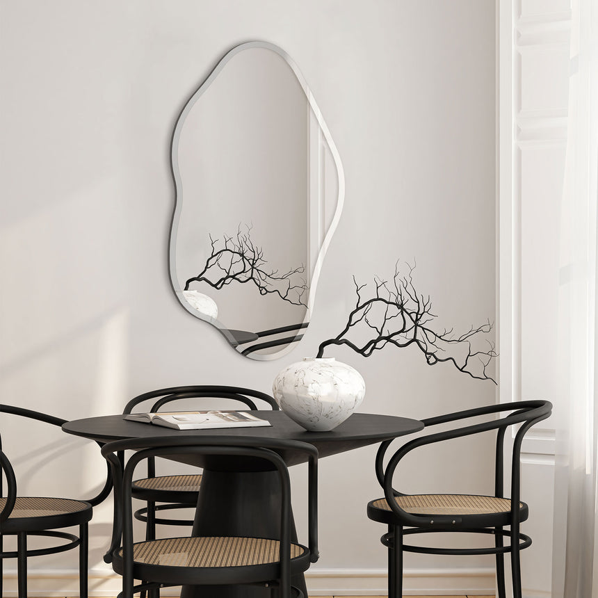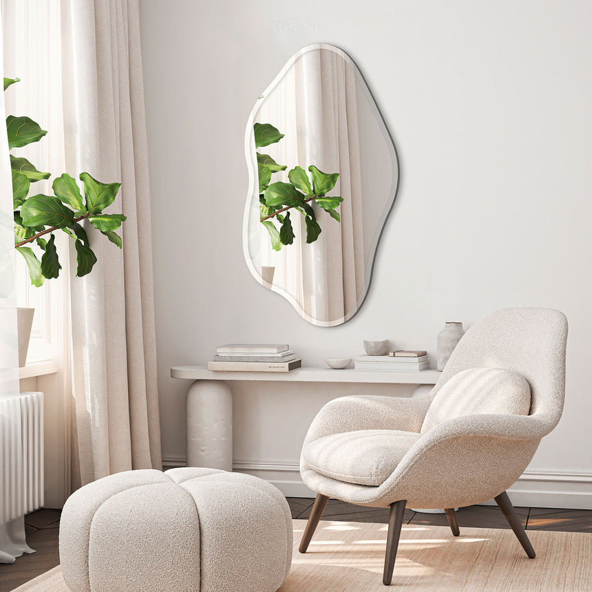 Dette organiske spejl med bagplade og facetkant kombinerer et minimalistisk og moderne udtryk med smukke, bølgende former. Spejlet er designet til at tilføre en naturlig elegance til rummet, hvor de bløde kurver skaber en subtil bevægelse på væggen. Facetkanten tilføjer et luksuriøst præg, mens bagpladen giver en solid og harmonisk tyngde. Dette spejl passer perfekt ind i både moderne og skandinavisk indretning og er ideelt til at skabe en følelse af rummelighed og lys i ethvert rum.✓ Dansk design