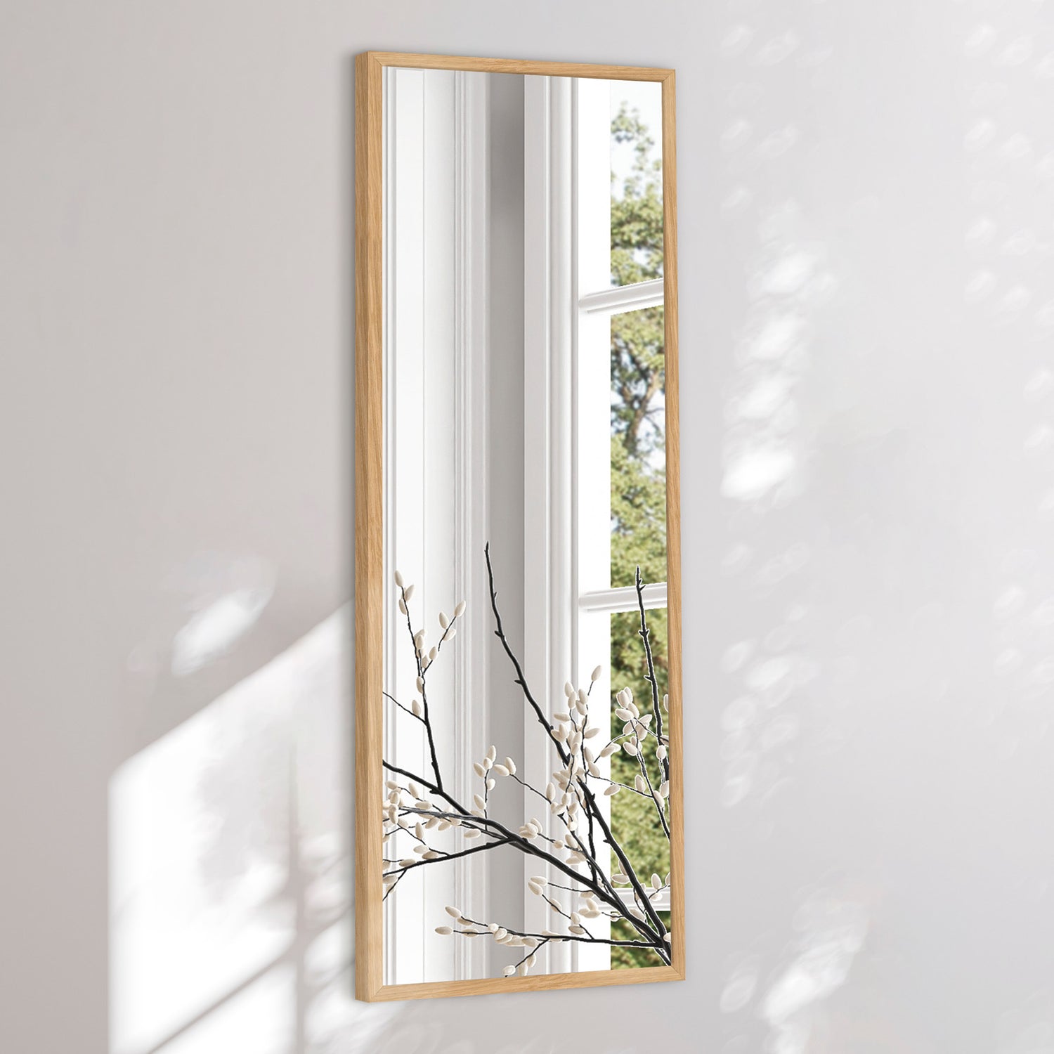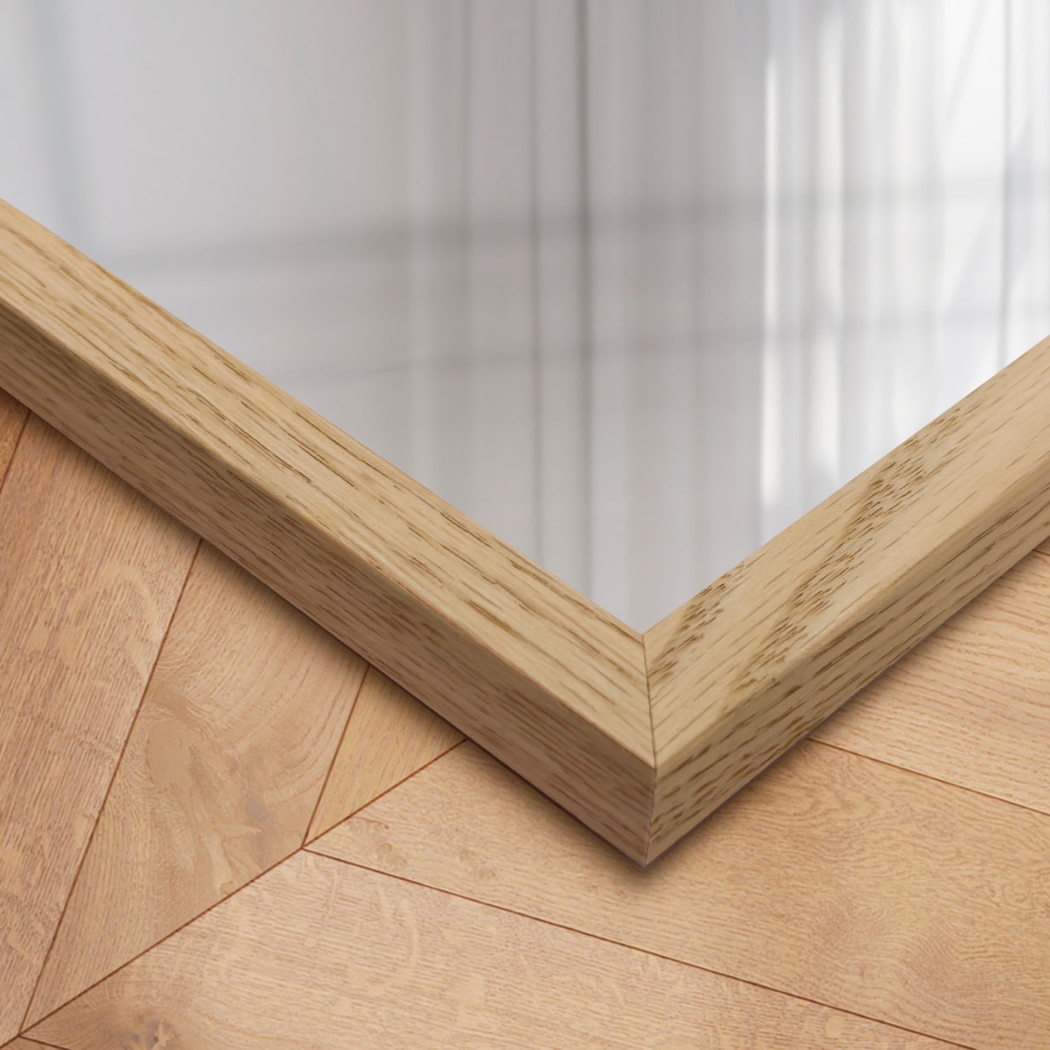 Dette klassiske spejl med sin smalle og minimalistiske ramme af massivt egetræ, er vores mest populære spejl, og det er let at se hvorfor. Med en ramme på kun 1,5 cm fremstår det både moderne og elegant, et bevis på, at ægte skønhed ofte findes i det enkle. Den naturlige varme fra egetræet tilfører en organisk følelse til rummet og understreger den rene elegance i spejlets design. Se også spejlet med røget egetræsramme her.