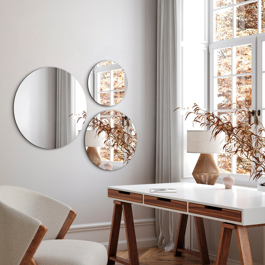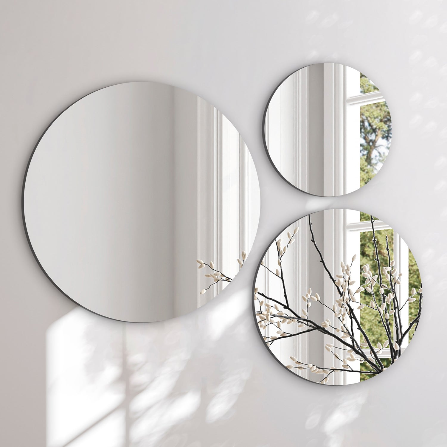 Dette højkvalitets spejlsæt består af tre runde spejle, der tilføjer et moderne og legende element til ethvert rum. Spejlene kan sammensættes på flere måder, hvilket giver mulighed for kreativitet og variation i indretningen. Udover at være dekorative er spejlsættet også yderst funktionelt, og det minimalistiske og stilrene udtryk tilføjer en elegant touch til enhver væg.✓ Dansk design