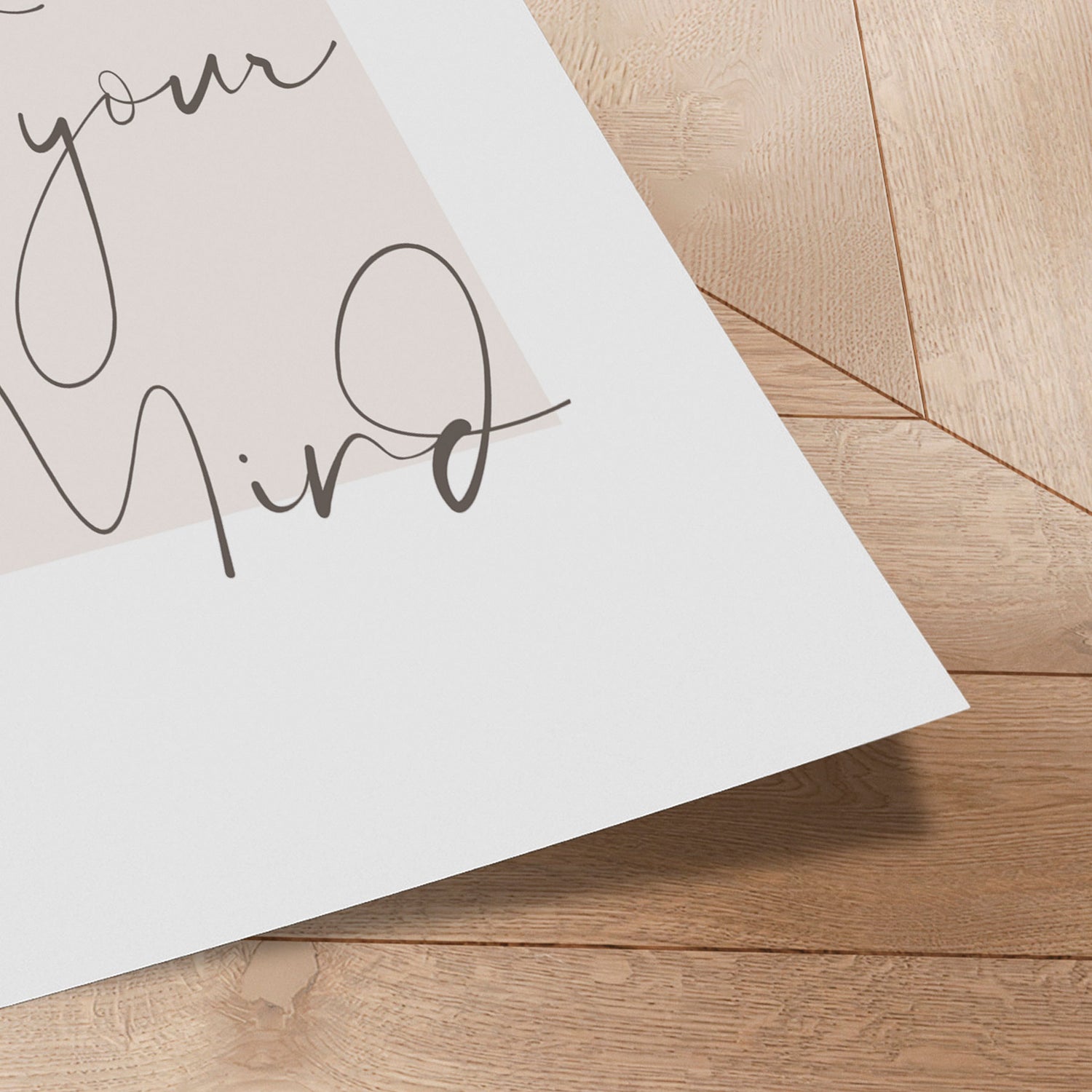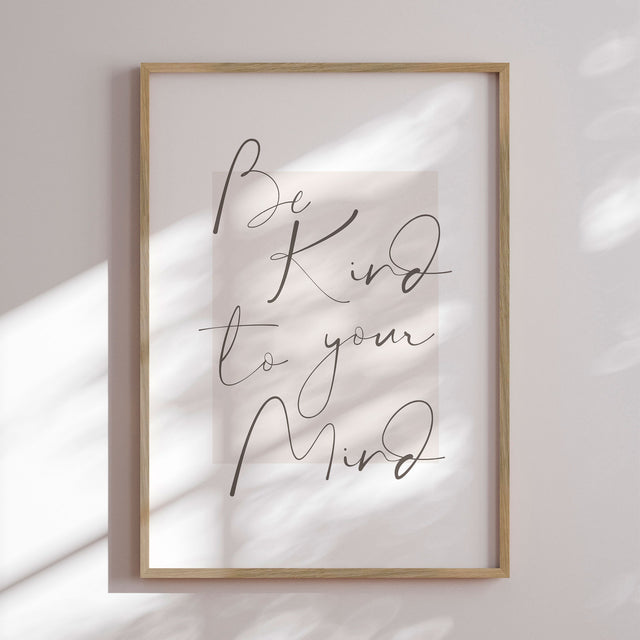 "Be Kind to Your Mind" af Ksana Kalpa er et roligt og opløftende typografisk værk, der minder os om vigtigheden af nærvær og selvomsorg. De lette, håndskrevne linjer svæver blidt over den lyse baggrund og skaber et luftigt udtryk med plads til ro og refleksion. Den afdæmpede farvepalette understøtter budskabet og gør plakaten til et diskret, men meningsfuldt statement. Et moderne kunsttryk, der passer smukt ind i rum, hvor balance, velvære og mental ro er i fokus.✓ Produceret i Danmark