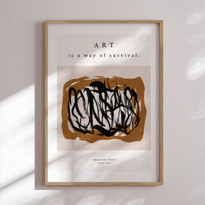 "Survival Scribbles" af Treechild forener rå energi med kunstnerisk udtryk i en plakat, der både udfordrer og fascinerer. De kraftfulde sorte og brune penselstrøg slynger sig over en varm, beige baggrund og skaber en intens, næsten eksplosiv komposition. Teksten “Art is a way of survival” tilfører værket en stærk poetisk dimension, hvor kunst bliver et redskab til at forstå og navigere i livet. En markant og tankevækkende plakat, der tilfører karakter til moderne interiører.✓ Produceret i Danmark